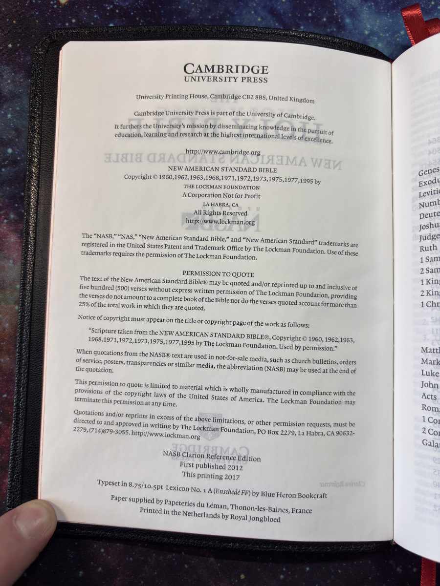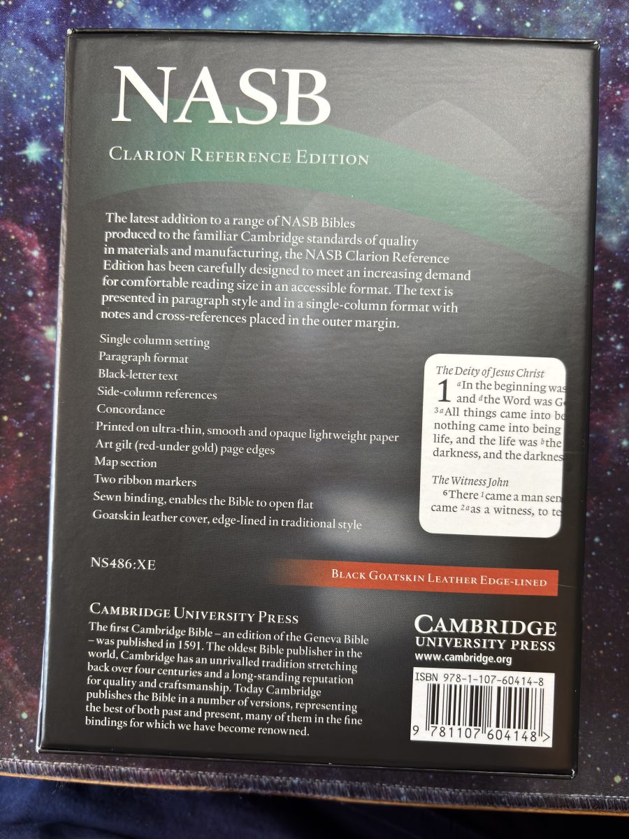 NASB 1995 Cambridge Clarion Mike March 18, 2026 0 Share this: Share on Facebook (Opens in new window) Facebook Share on X (Opens in new window) X Print (Opens in new window) Print Email a link to a friend (Opens in new window) Email 20260318 183445300 iOS 20260318 181351863 iOS 20260318 181602432 iOS 20260318 181359444 iOS 20260318 181614831 iOS 20260318 181413134 iOS 20260318 181630939 iOS 20260318 181419620 iOS 20260318 181646539 iOS 20260318 181713357 iOS 20260318 181706798 iOS « ‹ of 2 › » Like this:Like Loading... Post navigation Previous: Cambridge King James Bible: Concord Reference Edition Leave a Reply Cancel replyYou must be logged in to post a comment. Related Stories Cambridge King James Bible: Concord Reference Edition Mike March 18, 2026 0 RSV Sovereign Bible, Premier Collection: Black Goatskin, Pre-Release, First Edition. Mike March 17, 2026 0 Review: Crossway Heirloom Veritas Mike March 12, 2026 0