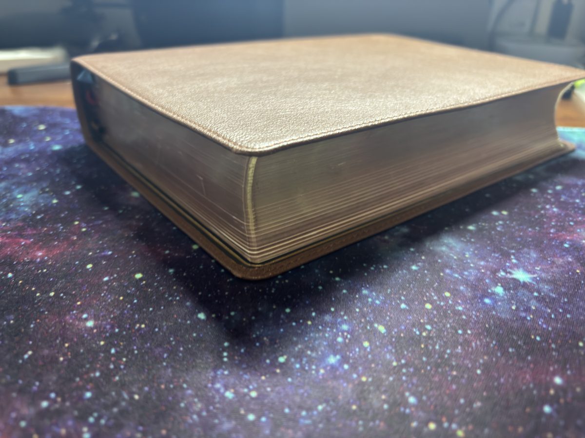 Art gilding on page edges: red stain under gold